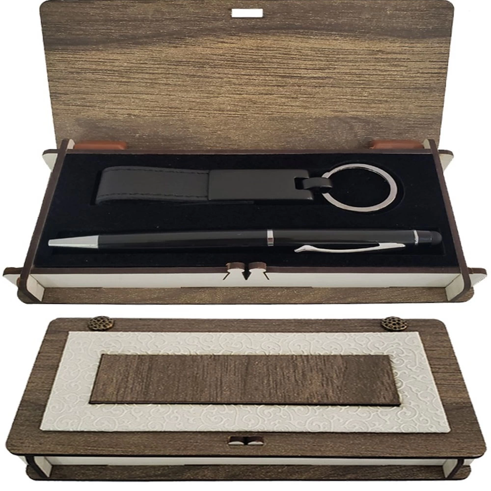 Ahşap Kutulu Siyah Kalem ve Anahtarlık Set