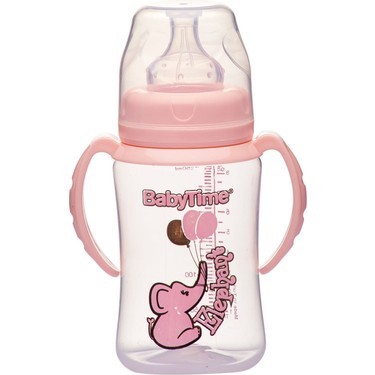 Baby Time Silikon Uçlu Geniş Ağız Kulplu Biberon - 250ml PEMBE