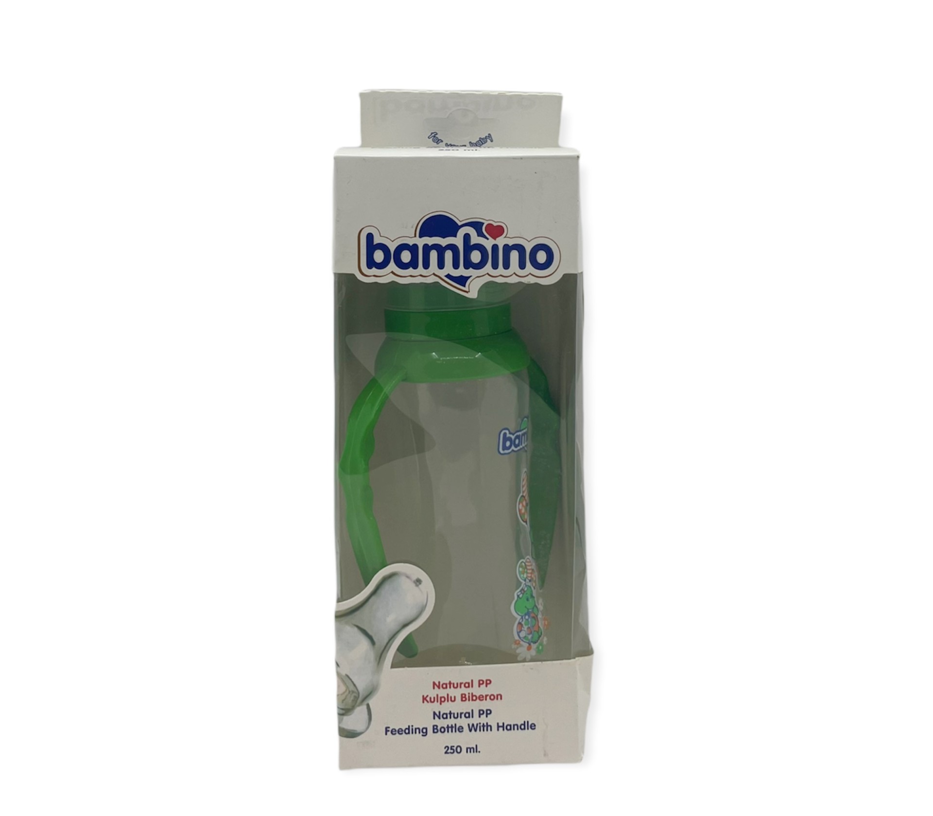 Bambino Natural PP Kulplu Biberon 250 ml - Yeşil
