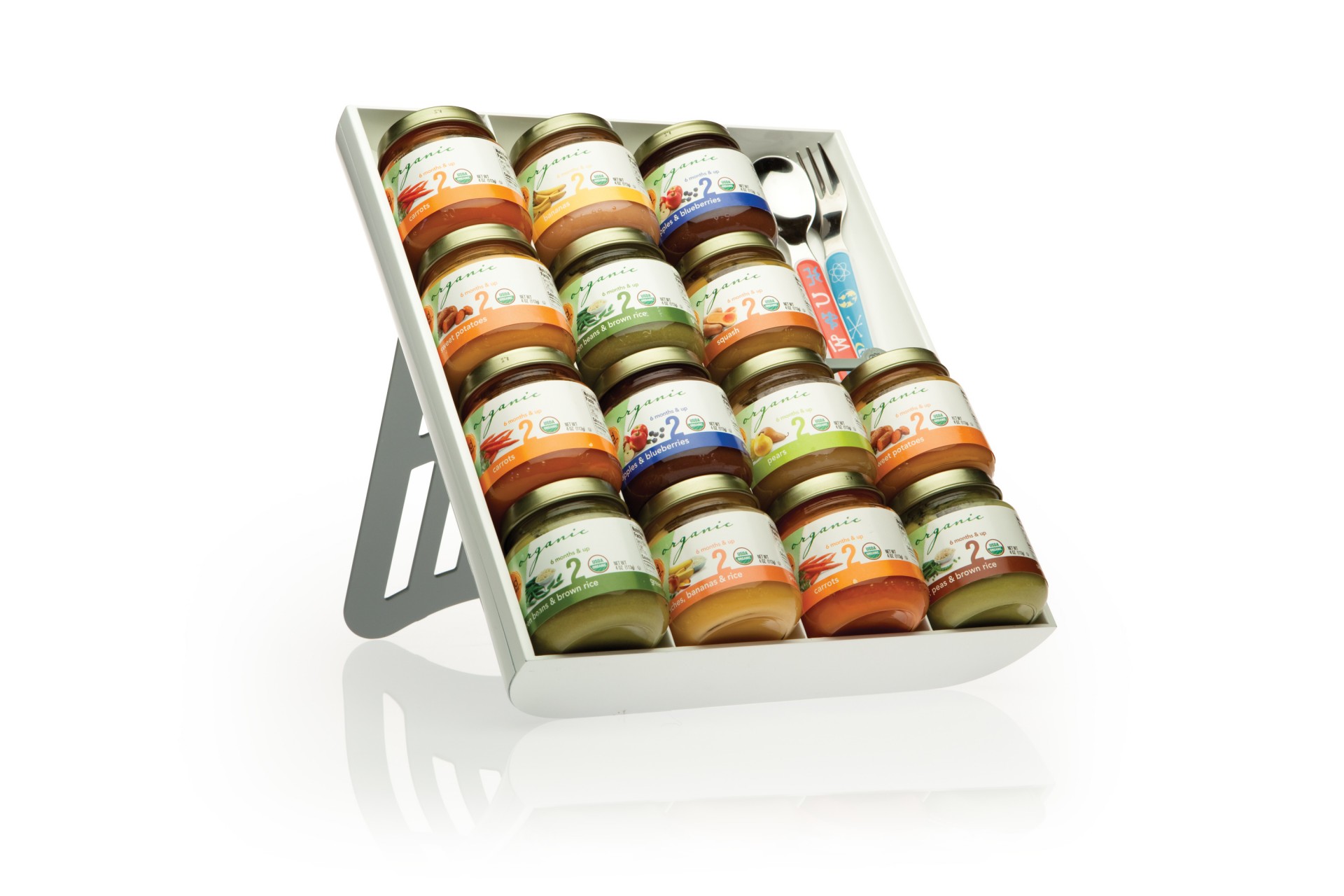 LiveFree. EatWell.™ - Özgür Yaşa. İyi ye. Mutfak eşyası için opsiyonel bölümü olup 16 bebek maması kavanozunu alabilir. Bebek büyüyünce başka şeyler için konulabilir. Büfeler, çekmeceler ve set üstü olarak çok amaçlı kullanıma uygundur. Takılıp çıkarılabilen bölücü mutfak eşyası muhafazası için çok uygundur. Üniversal Düzenleyici sık kullanılan malzemelere hemen erişmenizi sağlarken eşyaları düzenli olarak muhafaza edecektir. Çok amaçlı dört sıralı tabla tasarımı büfelerde çok yer kazandırır, çekmecelerin düzenli bir şekilde tutulmasını sağlar veya kolayca erişilmesi için set üstlerinde tek başına durabilir. Takılıp çıkarılabilen bir bölme, mutfak eşyası gibi nispeten küçük şeyler ve küçük ev aletleri için mükemmeldir. Bebek büyüdüğü zaman ise çatal, kaşık, bıçak, baharat, diğer büfe malzemeleri ve ofis gereçleri muhafaza edilebilir. Evin içinde her odada kullanılabilir! Üniversal Düzenleyicinin sağlam konstrüksiyonu bir kerede 3,5 kg veya 16 yiyecek kavanozunu taşıyabilir. Düz halde iken Üniversal Düzenleyici çekmecelerin birçoğunun içine sığmaktadır. Boyutları: Genişlik 26 cm, Yükseklik 28 cm, Derinlik 5 cm.