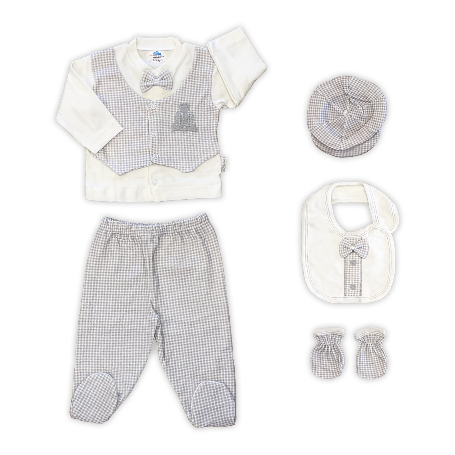 Sema Baby Papyonlu Lüks 5 Parça Hastane Çıkışı Zıbın Seti – Gri