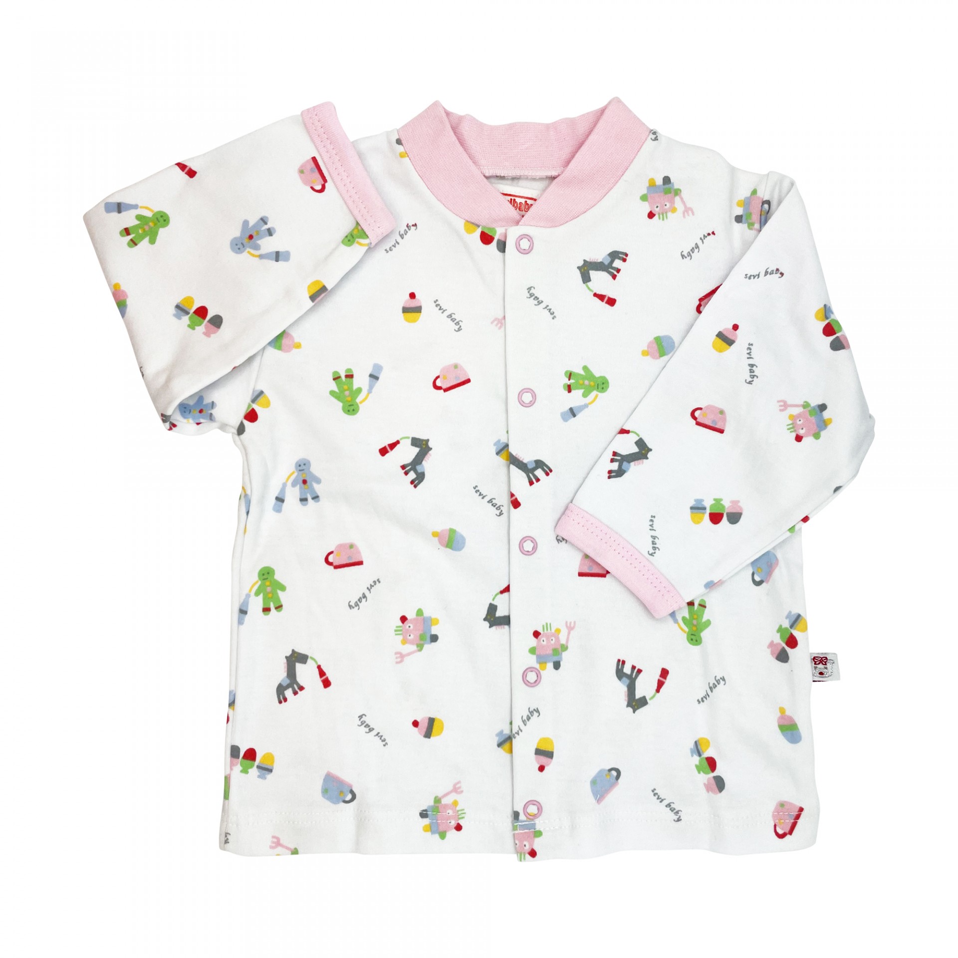 Sevi Bebe Desenli Önden Açık Bluz - Beyaz Desenli 12 Ay