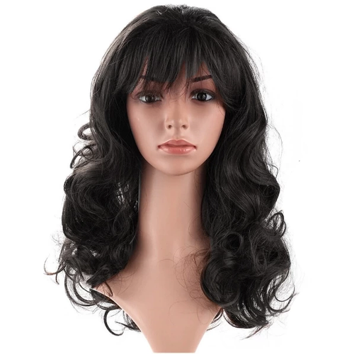 Siyah Renk Dalgalı Uzun Parti Peruğu