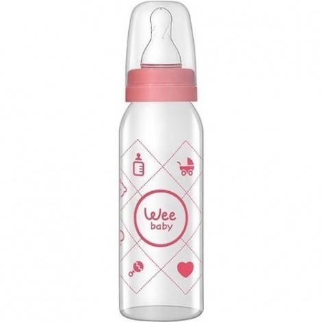 Wee Baby Silikon Uçlu Desenli Cam Biberon 250 cc - Pembe